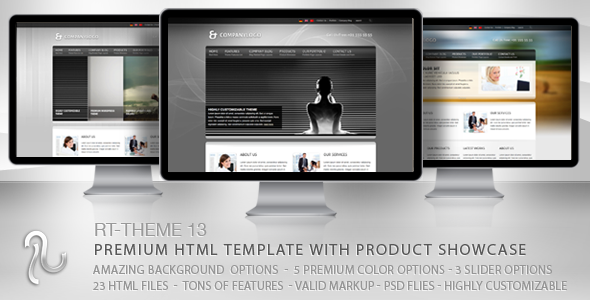 RT-Theme 13 is a multi-purpose html template with many stlye and layout options You can use it for business, corporate, product catalogue, services or portfolio web sites. The product and portfolio pages also give you wide opportunities to use in various services as tour iteneraries, rent a car, real estate or hotel room presentations. You can easily re-brand your theme by using the amazing background tools and 5 premium skin options.
